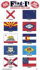 Includes 1 self-adhesive flag sticker of each state plus 1 flag sticker each of American Samoa, District of Columbia, Guam, Puerto Rico, Virgin Islands, Betsy Ross Flag, Bennington Flag, Star Spangled Banner, and 2 stickers of the current U.S. Flag.