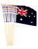 12″ x 18″ Australian stick flags are great for parades, sporting events, rallies and special event decorations. The flags are made of polyester with the design crisp on both sides of the flag and sold in packs of 12. All four sides of the flag are stitched and each flag is mounted with a pole hem to a 24″ wood staff with a gold spear top.