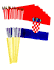 12" x 18" Croatian flags are great for parades, sporting events, rallies and special event decorations. The flags are made of polyester with the design crisp on both sides of the flag and sold in packs of 12. All four sides of the flag are stitched and each flag is mounted with a pole hem to a 24" wood staff with a gold spear top.