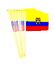 Ecuador flags measure 12" x 18" and are great for parades, sporting events, rallies and special event decorations. The flags are made of polyester with the design crisp on both sides of the flag and sold in packs of 12. All four sides of the flag are stitched and each flag is mounted with a pole hem to a 24" wood staff and gold spear top.