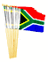 12" x 18" South African flags are great for parades, sporting events, rallies and special event decorations. The flags are made of polyester with the design crisp on both sides of the flag and are sold in packs of 12. All four sides of the flag are stitched and each flag is mounted with a pole hem to a 24" wood staff with a gold spear top.