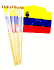12" x 18" Venezuelan flags are great for parades, sporting event, rallies and special event decorations. The flags are made of polyester with the design crisp on both sides of the flag and are sold in packs of 12. All four sides of the flag are stitched and each flag is mounted with a pole hem to a 24" wood staff with a gold spear top.