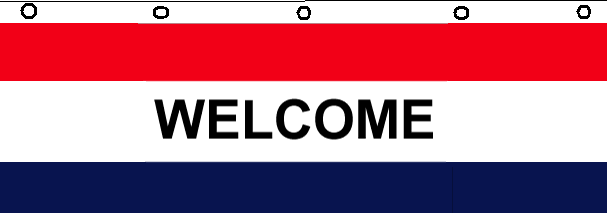 This colorful, durable nylon advertising banner will publicize your business like no other form of advertising. Each banner is finished with strong heading and brass grommets. Reading correctly on one side and appearing in reverse on the opposite side. Standard colors are red, white, and blue.