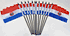 Each flag measures 4"x6" and is attached to a 10" black plastic staff with black or gold spear top. Excellent low price alternative for special events,