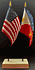 Elevate your workspace with our Acadiana and American miniature flag desk set! These silk-like rayon flags, measuring 4x6 inch and are attached to a 10 inch black plastic staff and finished with a gold spear top. Perfect for office, classroom, or table decor. Each set comes with a 4 inch long white flag stand for added display options.