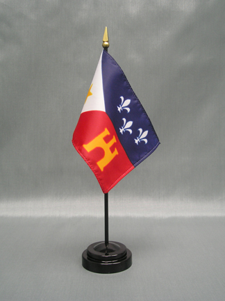 These miniature Acadiana 4x6 inch; stick flags are beautifully printed on silk-like material. Each flag is carefully hem-stitched on all 4 sides for longer lasting beauty. They are attached to a 10 inch; black plastic staff with a gold spear making these international flags perfect for desktop or tabletop displays.