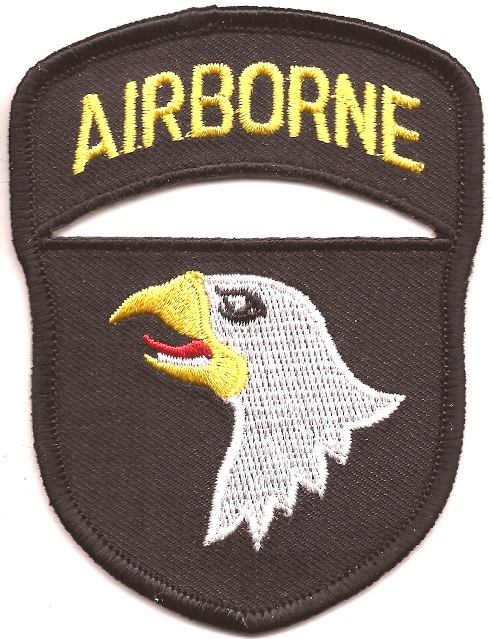 Airborne Patch features a bold black background with a detailed eagle design.