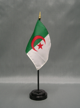 These miniature Algeria 4x6 inch; stick flags are beautifully printed on silk-like material. Each flag is carefully hem-stitched on all 4 sides for longer lasting beauty. They are attached to a 10 inch; black plastic staff with a gold spear making these international flags perfect for desktop or tabletop displays.