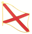 Alabama single flag lapel pins depict one waving flag. Each Alabama flag pin measures approximately 1" x 3/4" or 24 mm x 16 mm and has an all metal lacquered design with clutch pin.