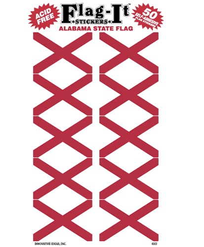 Includes 50 self-adhesive Alabama flag stickers