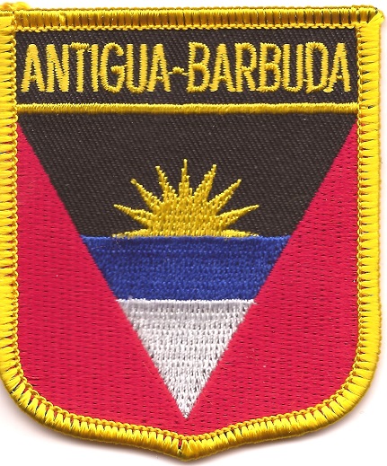 Antigua-Barbuda flag shield patches are now available. Each Antigua flag patch measures 2.25″ x 2.5″ and can be ironed on or sewn on.