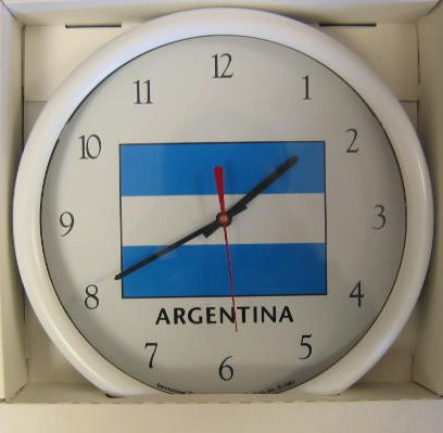 Show off your Argentine heritage by displaying this Argentina flag clock. Each clock measures 10.5" in diameter and comes individually boxed.