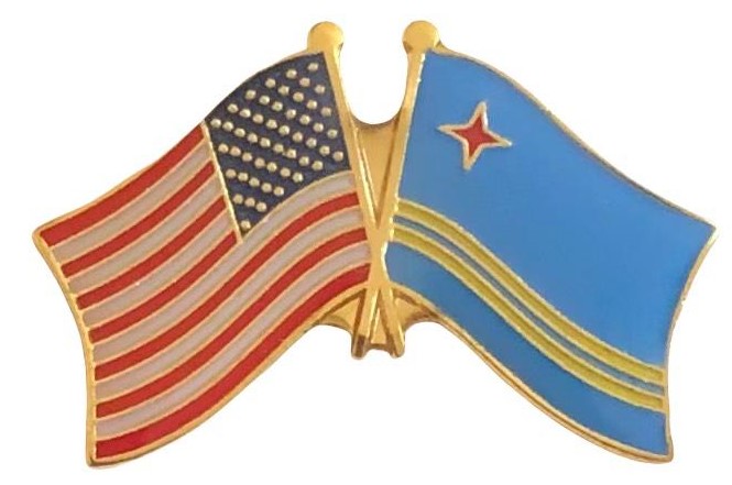 Each Aruba flag friendship lapel pin depicts the US flag on the left along with the Aruba flag on the right. Each pin measures approximately 1″ x 3/4″ or 28 mm x 18.3 mm and is the same quality as the single flag lapel pins.