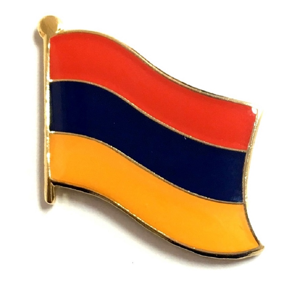 Armenia flag pin measures approximately 1 inch; x 3/4 inch; or 24 mm x 16 mm and has an all metal lacquered design with clutch pin.