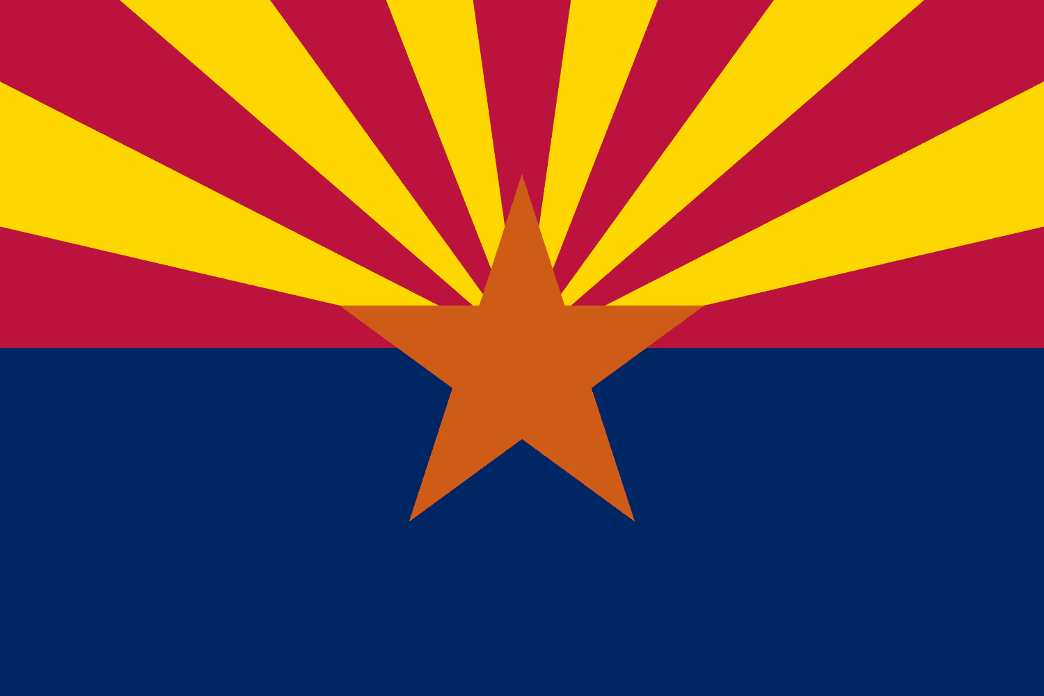 This popular 100% polyester Arizona state flag measures 3′x5′, is double stitched, has 2 brass grommets attached, and is individually packaged. It can be used indoors or outdoors, but is not as durable outdoors as the nylon flags.