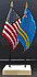 Elevate your workspace with our Aruba and American miniature flag desk set! These silk-like rayon flags, measuring 4x6 inch and are attached to a 10 inch black plastic staff and finished with a gold spear top. Perfect for office, classroom, or table decor. Each set comes with a 4 inch long white flag stand for added display options.