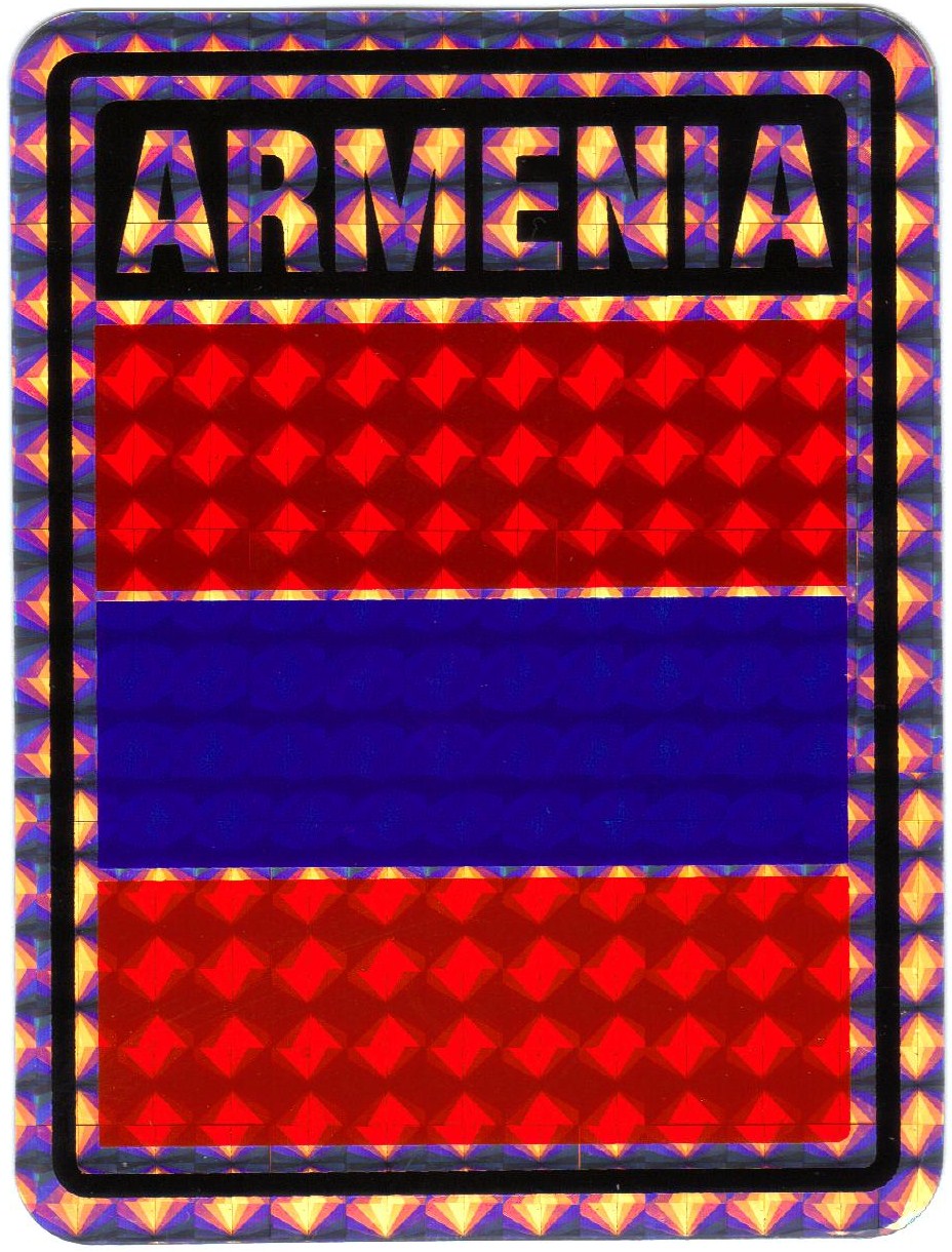 Armenia prismatic reflective decal stickers are made of waterproof vinyl. Decals measure 3"x4" and can be used outdoors in all weather. Great for attaching to your car, truck or boat. Decorate your home or automobile and show your Armenian pride.