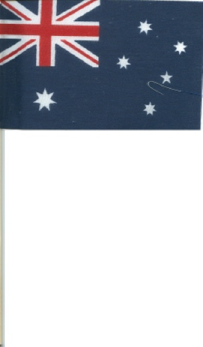 The most economical miniature stick flags for your large events. Australian Flags are made of non-fray cotton, measure 4″x6″ and are attached to a 10″ natural wood staff. Each order unit contains 24 flags. Quantity discounts are available.