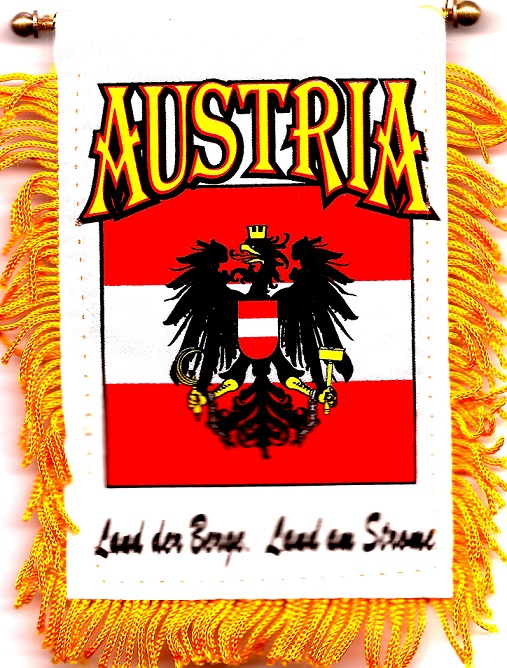 Austrian car windshield, window or mirror mini banner flags measure 3 1/2 x 5 inches; and are great ways to show your heritage. Each flag has a gold fringe with a string for hanging over your car mirror, and a suction cup to attach the mini flag to your windshield or car window.