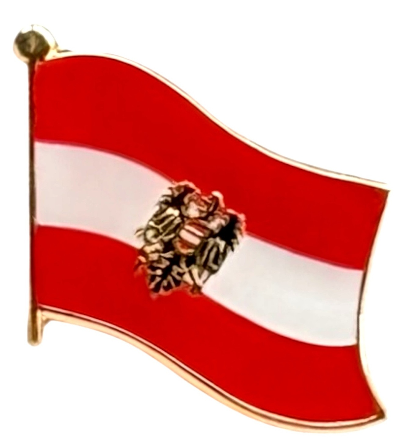 Austria w/Eagle flag pin measures approximately 1 inch; x 3/4 inch; or 24 mm x 16 mm and has an all metal lacquered design with clutch pin.