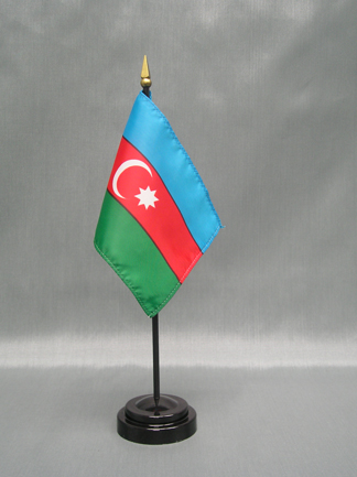 These miniature Azerbaijan 4x6 inch; stick flags are beautifully printed on silk-like material. Each flag is carefully hem-stitched on all 4 sides for longer lasting beauty. They are attached to a 10 inch; black plastic staff with a gold spear making these international flags perfect for desktop or tabletop displays.
