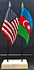 Elevate your workspace with our Azerbaijan and American miniature flag desk set! These silk-like rayon flags, measuring 4x6 inch and are attached to a 10 inch black plastic staff and finished with a gold spear top. Perfect for office, classroom, or table decor. Each set comes with a 4 inch long white flag stand for added display options.