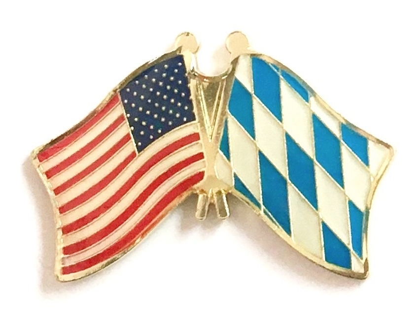 Each Bavaria flag friendship lapel pin depicts the US flag on the left along with the Bavarian flag on the right. Each pin measures approximately 1" x 3/4" or 28 mm x 18.3 mm and is the same quality as the single flag lapel pins.