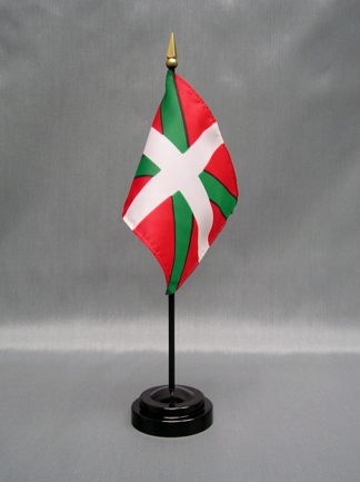 These miniature Basque Lands 4x6 inch; stick flags are beautifully printed on silk-like material. Each flag is carefully hem-stitched on all 4 sides for longer lasting beauty. They are attached to a 10 inch; black plastic staff with a gold spear making these international flags perfect for desktop or tabletop displays.
