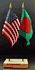 Elevate your workspace with our Bangladesh and American miniature flag desk set! These silk-like rayon flags, measuring 4x6 inch and are attached to a 10 inch black plastic staff and finished with a gold spear top. Perfect for office, classroom, or table decor. Each set comes with a 4 inch long white flag stand for added display options.