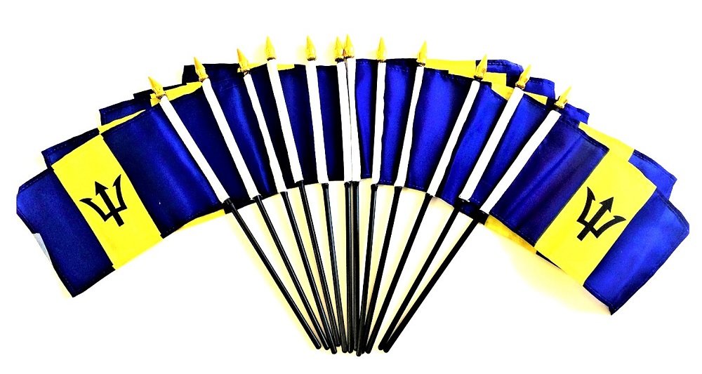 These Barbadian polyester table flags are great for special events, parades and party decorations. They are priced less than the top quality rayon desk flags and are sold only in packs of 12 per order unit. Only $1.00 each. Each Barbadian miniature flag measures 4″x6″ and is attached with a pole hem to a 10″ black plastic staff with a black spear top.