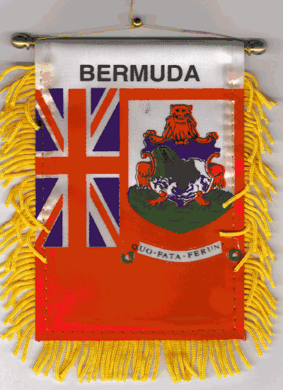 Bermuda car windshield, window or mirror mini banner flags measure 3 1/2″ x 5″ and are great ways to show your heritage. Each flag has a gold fringe with a string for hanging over your car mirror, and a suction cup.