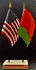 Elevate your workspace with our Belarus and American miniature flag desk set! These silk-like rayon flags, measuring 4x6 inch and are attached to a 10 inch black plastic staff and finished with a gold spear top. Perfect for office, classroom, or table decor. Each set comes with a 4 inch long white flag stand for added display options.