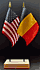 Elevate your workspace with our Belgium and American miniature flag desk set! These silk-like rayon flags, measuring 4x6 inch and are attached to a 10 inch black plastic staff and finished with a gold spear top. Perfect for office, classroom, or table decor. Each set comes with a 4 inch long white flag stand for added display options.