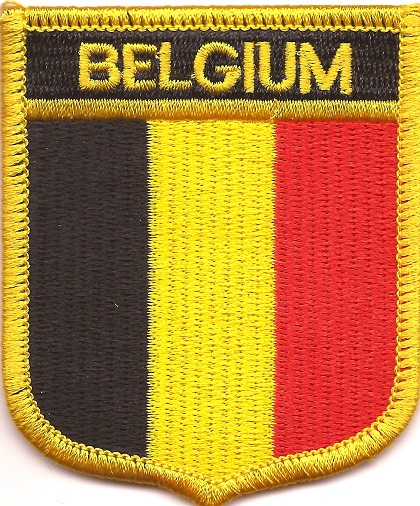 Belgium flag shield patches are fully embroidered and measure 2.25" x 2.5". Each patch is trimmed in gold and can be ironed or sewn on.