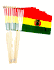 12″ x 18″ Bolivian flags are great for parades, sporting events, rallies and special event decorations. The flags are made of polyester with the design crisp on both sides of the flag and are sold in packs of 12. All four sides of the flag are stitched and each flag is mounted with a pole hem to a 24″ wood staff with a gold spear top.