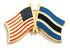 Each Botswana flag friendship lapel pin depicts the US flag on the left along with the Botswana flag on the right. Each pin measures approximately 1″ x 3/4″ or 28mm x 18.3mm and is the same quality as the single flag lapel pins.