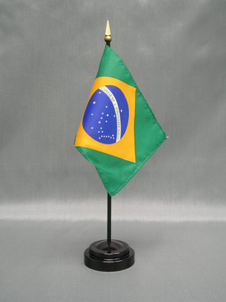 These miniature Brazil 4x6 inch; stick flags are beautifully printed on silk-like material. Each flag is carefully hem-stitched on all 4 sides for longer lasting beauty. They are attached to a 10 inch; black plastic staff with a gold spear making these international flags perfect for desktop or tabletop displays.