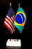 Elevate your workspace with our Brazil and American miniature flag desk set! These silk-like rayon flags, measuring 4x6 inch and are attached to a 10 inch black plastic staff and finished with a gold spear top. Perfect for office, classroom, or table decor. Each set comes with a 4 inch long white flag stand for added display options.