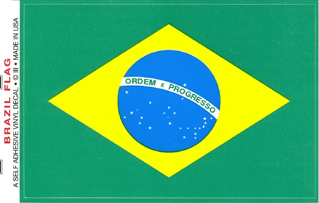 These waterproof Brazilian vinyl flag decal stickers are perfect for attaching to your car window, bumper or any flat surface. These decals are only available in 3 1/2″ x 5″ and have the adhesive on the back of the decal.