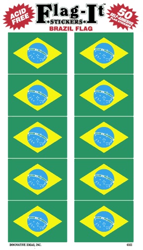 Includes 50 self-adhesive Brazil flag stickers