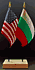 Elevate your workspace with our Bulgaria and American miniature flag desk set! These silk-like rayon flags, measuring 4x6 inch and are attached to a 10 inch black plastic staff and finished with a gold spear top. Perfect for office, classroom, or table decor. Each set comes with a 4 inch long white flag stand for added display options.