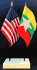 Elevate your workspace with our Burma and American miniature flag desk set! These silk-like rayon flags, measuring 4x6 inch and are attached to a 10 inch black plastic staff and finished with a gold spear top. Perfect for office, classroom, or table decor. Each set comes with a 4 inch long white flag stand for added display options.