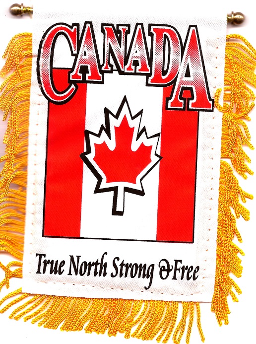 Canadian car windshield, window or mirror mini measure 3 1/2 x 5 inches; and are great ways to show your heritage. Each flag has a gold fringe with a string for hanging over your car mirror, and a suction cup to attach the mini flag to your windshield or car window.