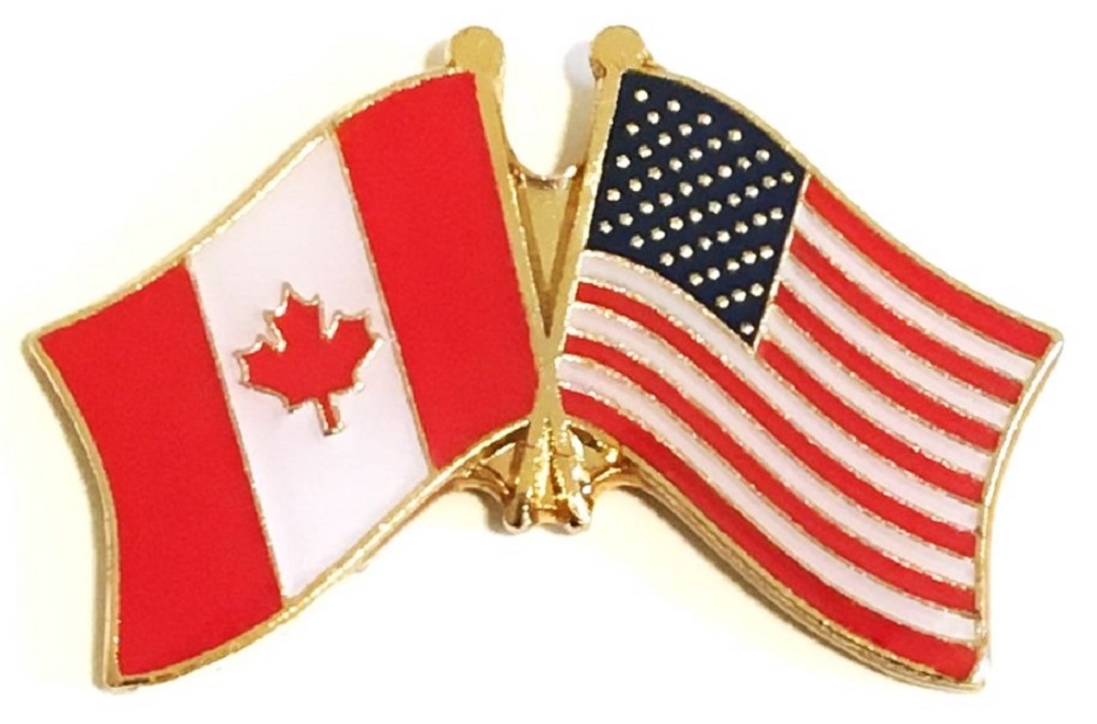 Each Canada/United States flag friendship lapel pin depicts the Canadian flag on the left along with the United States flag on the right. Each pin measures approximately 1″ x 3/4″ and is the same quality as the single flag lapel pins.