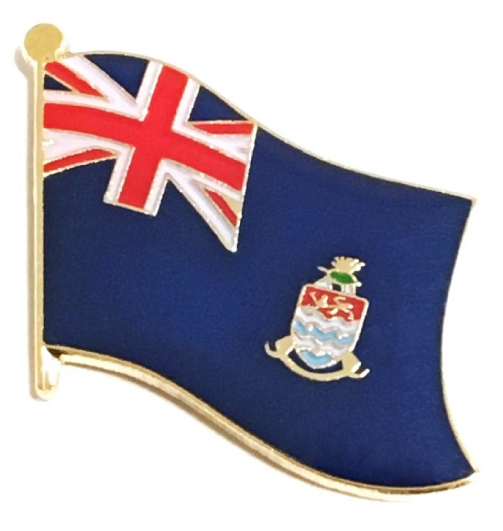 Cayman Islands flag pin measures approximately 1 inch; x 3/4 inch; or 24 mm x 16 mm and has an all metal lacquered design with clutch pin.