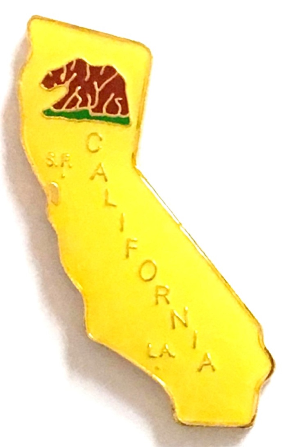 California map lapel pins are shaped like the map design of the State. Each California map pin measures approximately 5/8" x 5/8" and has an all metal lacquered design with clutch pin.