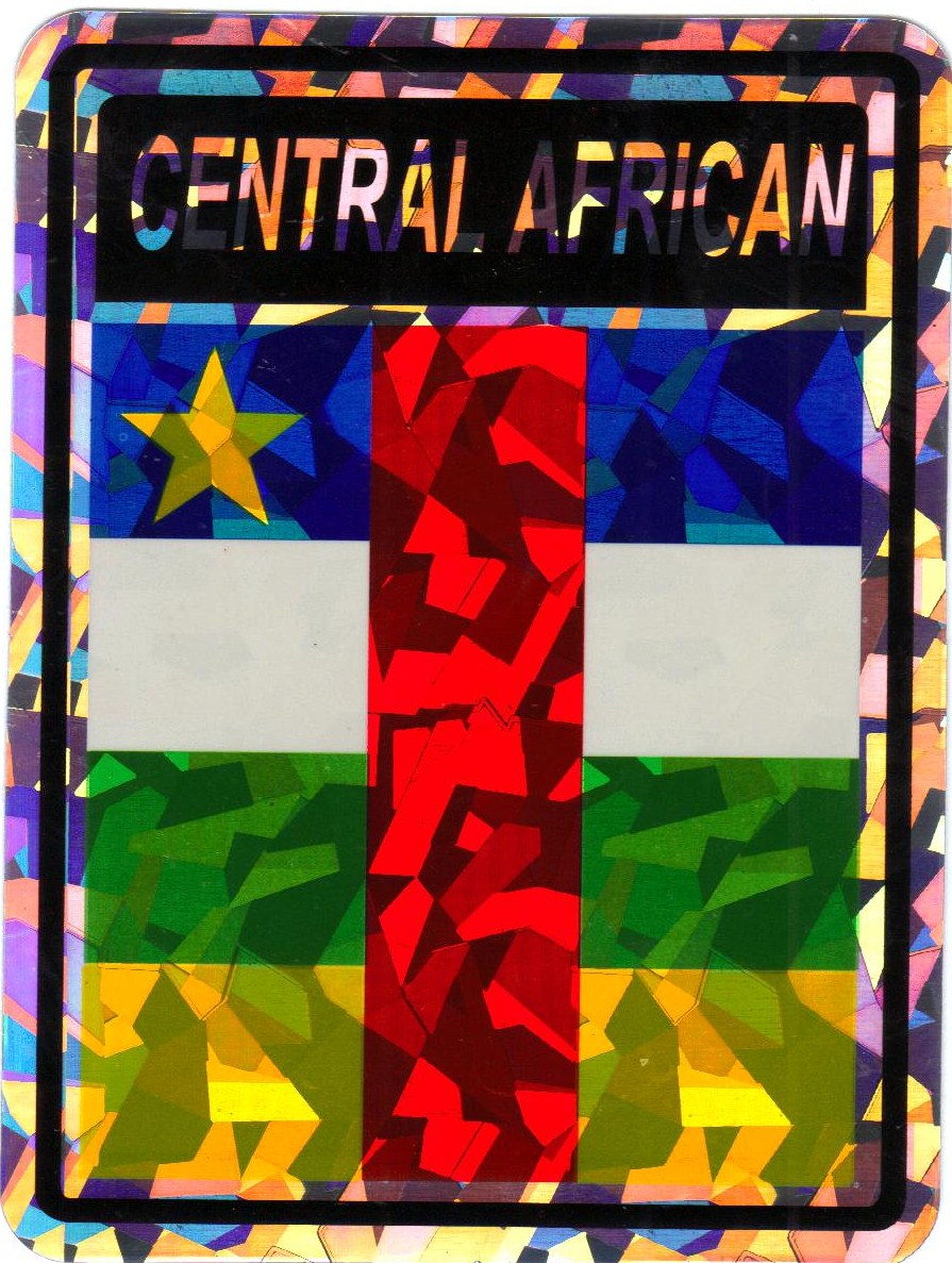 Central African prismatic reflective decal stickers are made of waterproof vinyl. Decals measure 3″x4″ and can be used outdoors in all weather. Great for attaching to your car, truck or boat. Decorate your home or automobile and show your Central African pride.