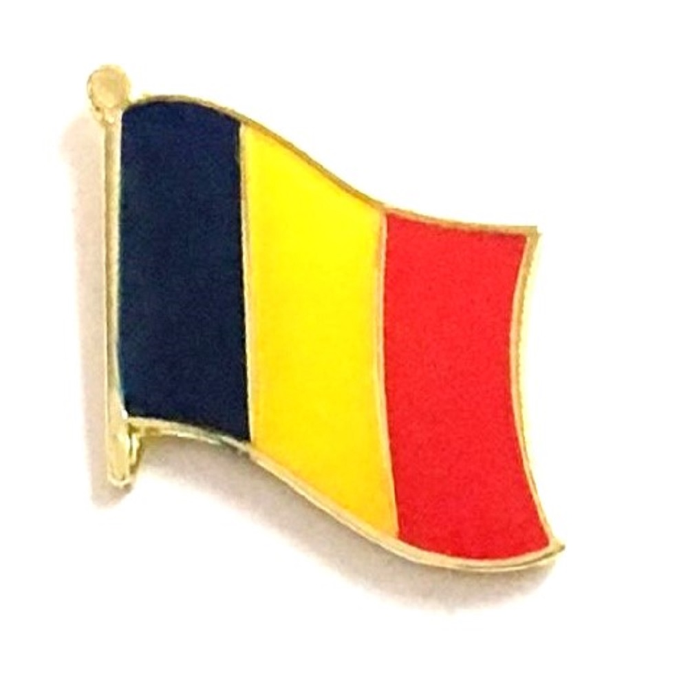 Chad flag pin measures approximately 1 inch; x 3/4 inch; or 24 mm x 16 mm and has an all metal lacquered design with clutch pin.
