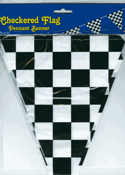 Checkered flag streamers are an all-weather plastic racing pennant banner that measures 12 foot long. These racing flag streamers are perfect for display or party decorations.