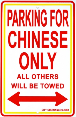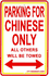 Chinese parking signs are made of durable vinyl plastic with two mounting holes. Each sign measures 8" x 12".